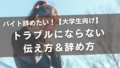 TOP 2025.03.162025.03.17 ちょこばいと 大学生活とバイト、どっちも充実 New Post 新着記事 バイトを掛け持ちで8時間以上働くとバレる?働きたい気持ちと週40時間の壁 2025.10.132025.10.14 バイト辞めたい!トラブルにならない伝え方&辞め方【大学生向け】 2025.03.142025.03.16 バイト掛け持ちで失敗しない!大学生のための賢い選び方と注意点 2025.03.082025.03.15 大学生におすすめの単発バイト!種類・選び方・注意点まとめ 2025.03.082025.03.15 MORE Category カテゴリー バイト掛け持ちで失敗しない!大学生のための賢い選び方と注意点 2025.03.082025.03.15 大学生におすすめの単発バイト!種類・選び方・注意点まとめ 2025.03.082025.03.15 MORE バイトを掛け持ちで8時間以上働くとバレる?働きたい気持ちと週40時間の壁 2025.10.132025.10.14 バイト辞めたい!トラブルにならない伝え方&辞め方【大学生向け】 2025.03.142025.03.16 MORE 高時給バイトの裏側!本当に稼げる?注意点は? 2025.03.082025.03.15 将来の夢につながるかも?アルバイトで広がる可能性 2025.03.082025.03.15 MORE Popular 人気記事 大学生におすすめの単発バイト!種類・選び方・注意点まとめ 2025.03.082025.03.15 バイト辞めたい!トラブルにならない伝え方&辞め方【大学生向け】 2025.03.142025.03.16 自己PRで悩む大学生必見!アルバイト経験を魅力的に伝える方法 2025.03.082025.03.15 将来の夢につながるかも?アルバイトで広がる可能性 2025.03.082025.03.15 バイト先での人間関係を円滑にする!コミュニケーション術 2025.03.082025.03.15 高時給バイトの裏側!本当に稼げる?注意点は? 2025.03.082025.03.15